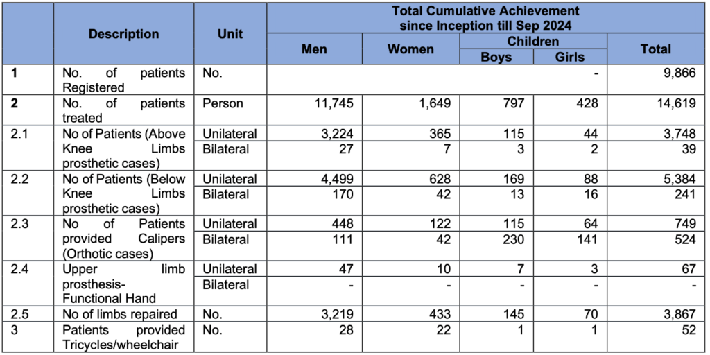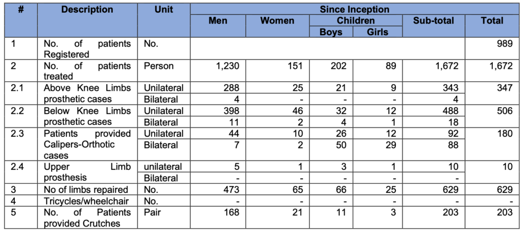 Since its inception, the Dharki center has catered to the needs of 1,672 individuals, offering a range of prosthetic and orthotic services. It has treated 347 cases of above-knee prostheses and 506 cases of below-knee prostheses. Moreover, the center has repaired 629 limbs, provided 203 crutches, and ensured that patients receive proper orthotic support through 180 caliper cases.